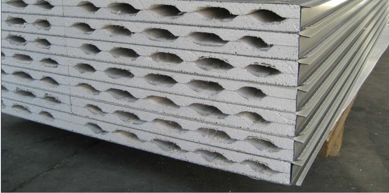 硫氧鎂夾芯板充分發(fā)揮了硫氧鎂復(fù)合材料的獨特性能,在防火,防潮,防脫膠,高強度,保溫,隔熱,吸音等方面有著顯著地優(yōu)點及功效。 生產(chǎn)工...